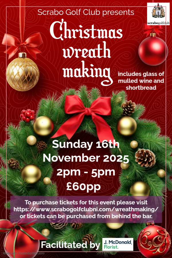 πβ¨ Get into the festive spirit at Scrabo Golf Club! Join our Christmas Wreath Making Workshop and craft your own beautiful wreath to take home. πΏπ